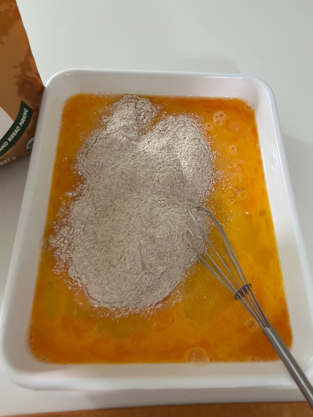 달걀물-밀가루-빵가루 순서인데 저는 달걀물에 밀가루를 넣어서 한꺼번에 만들어요