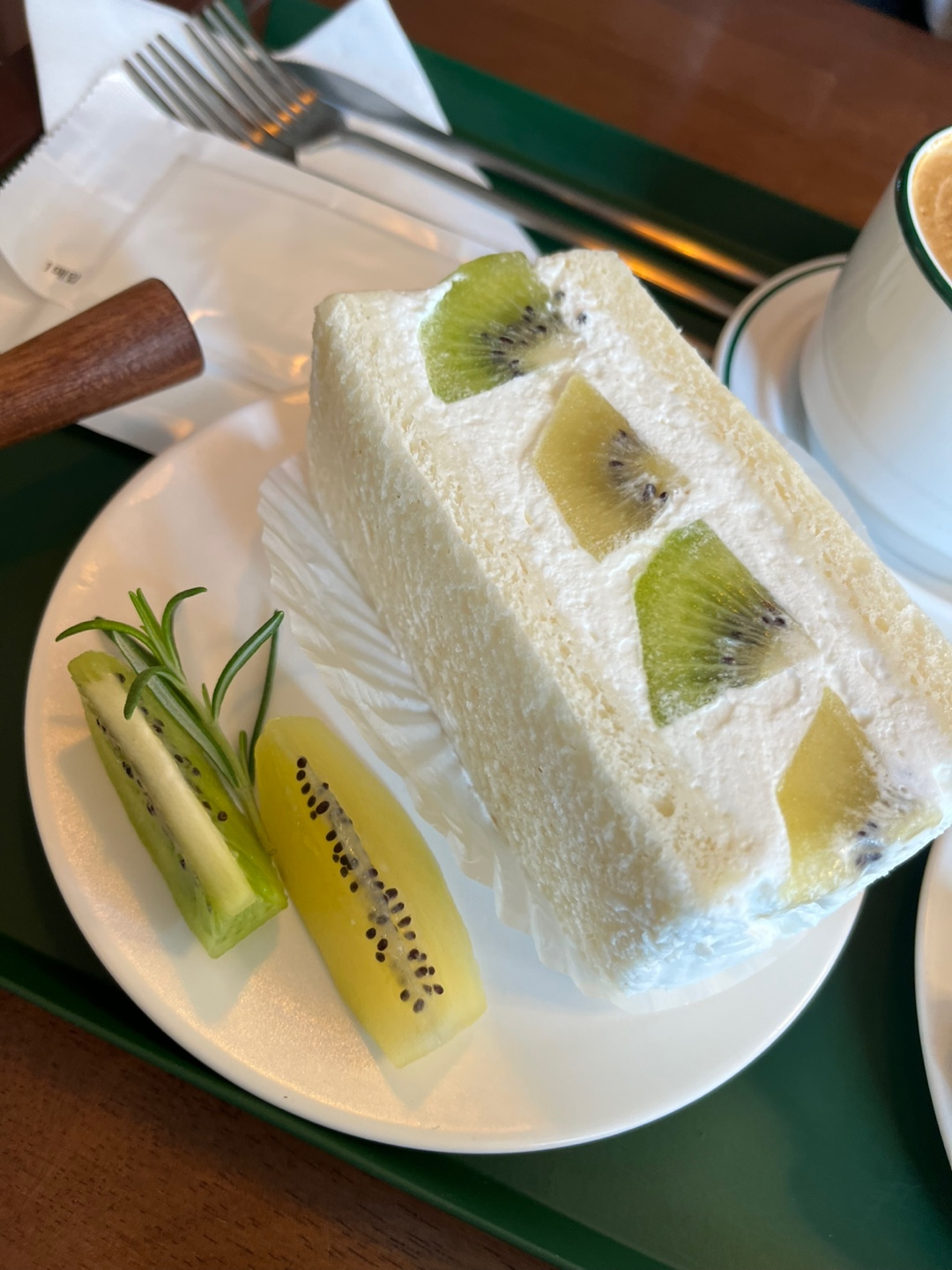 골드키위와 키위가 들어간 키위산도, 생크림이 많이 달지도 않고 맛있었어요