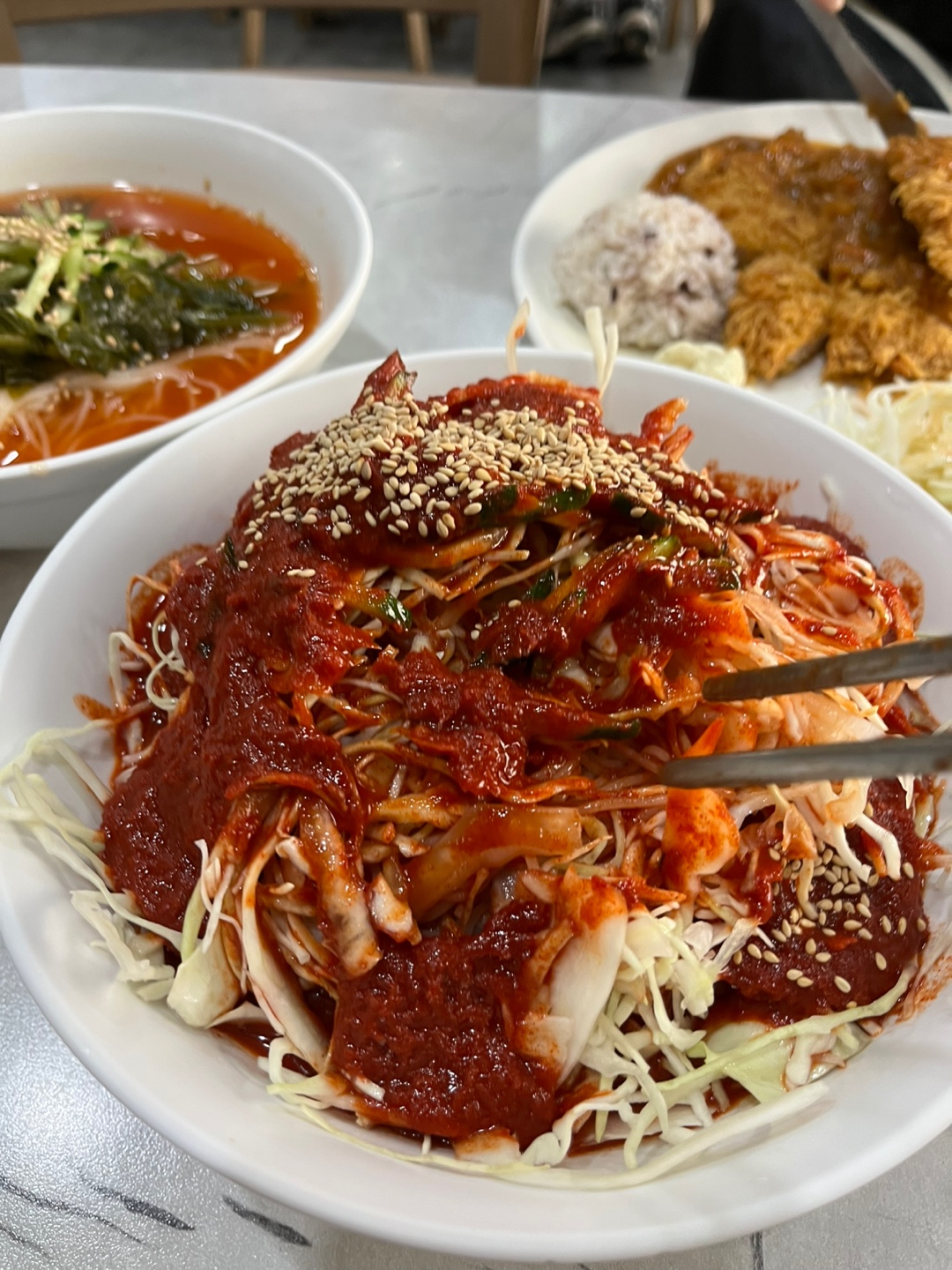 양배추가 듬뿍 올라간 비빔국수