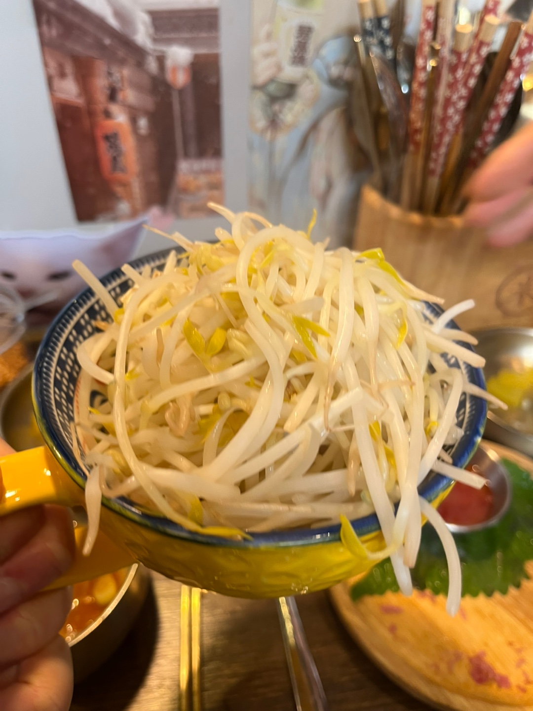 나중에 숙주와 면을 리필함, 요런 귀여운 컵에 담아주심