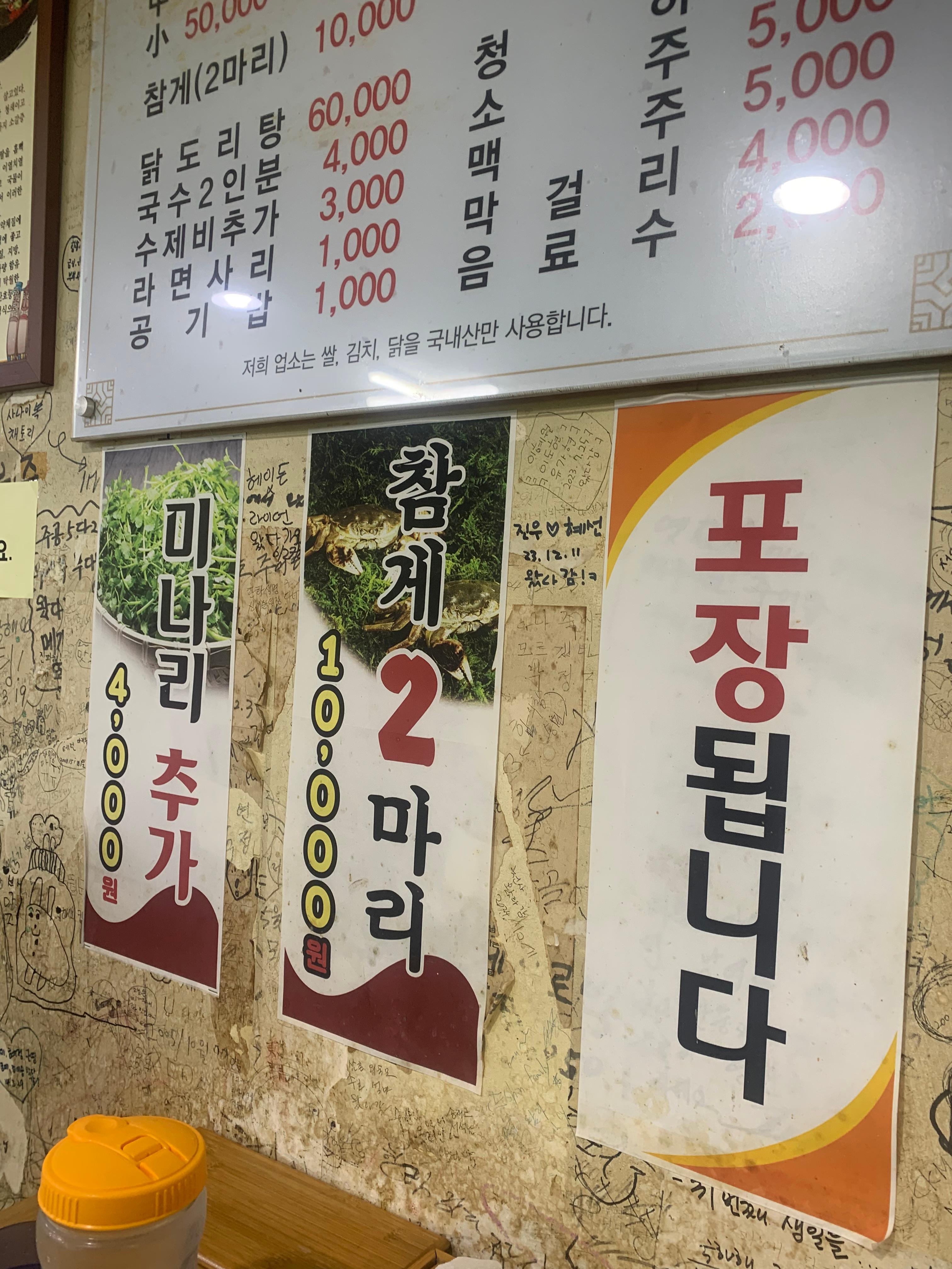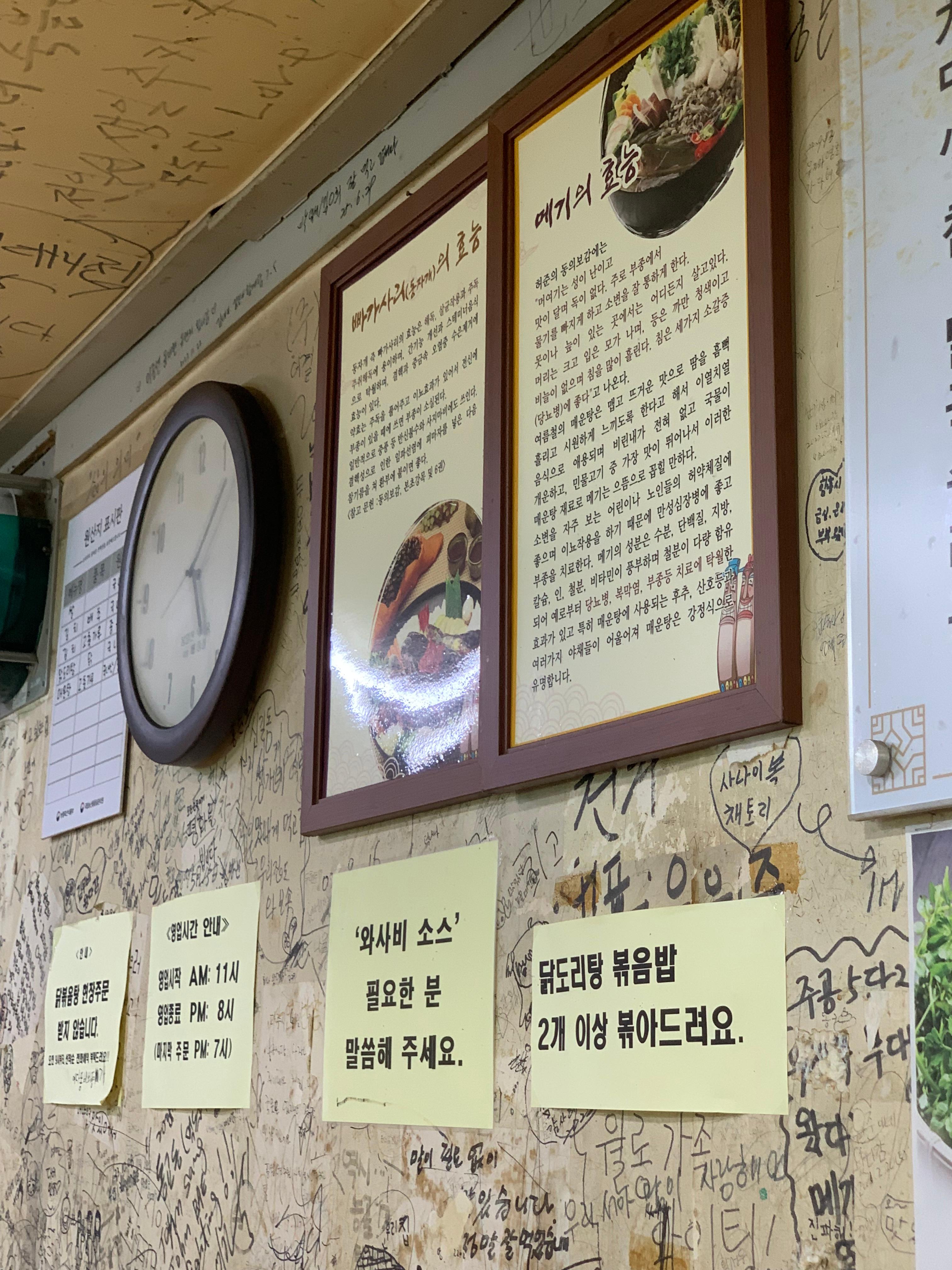 메뉴판인데 눈에 보이는 닭도리탕, 최근에? 전지적참견시점에 나왔는데 닭도리탕을 먹는게 나온! 맛설명은 매운탕 양념에 닭을 넣은거라고 그리고 예약을 미리 해야하는 메뉴임