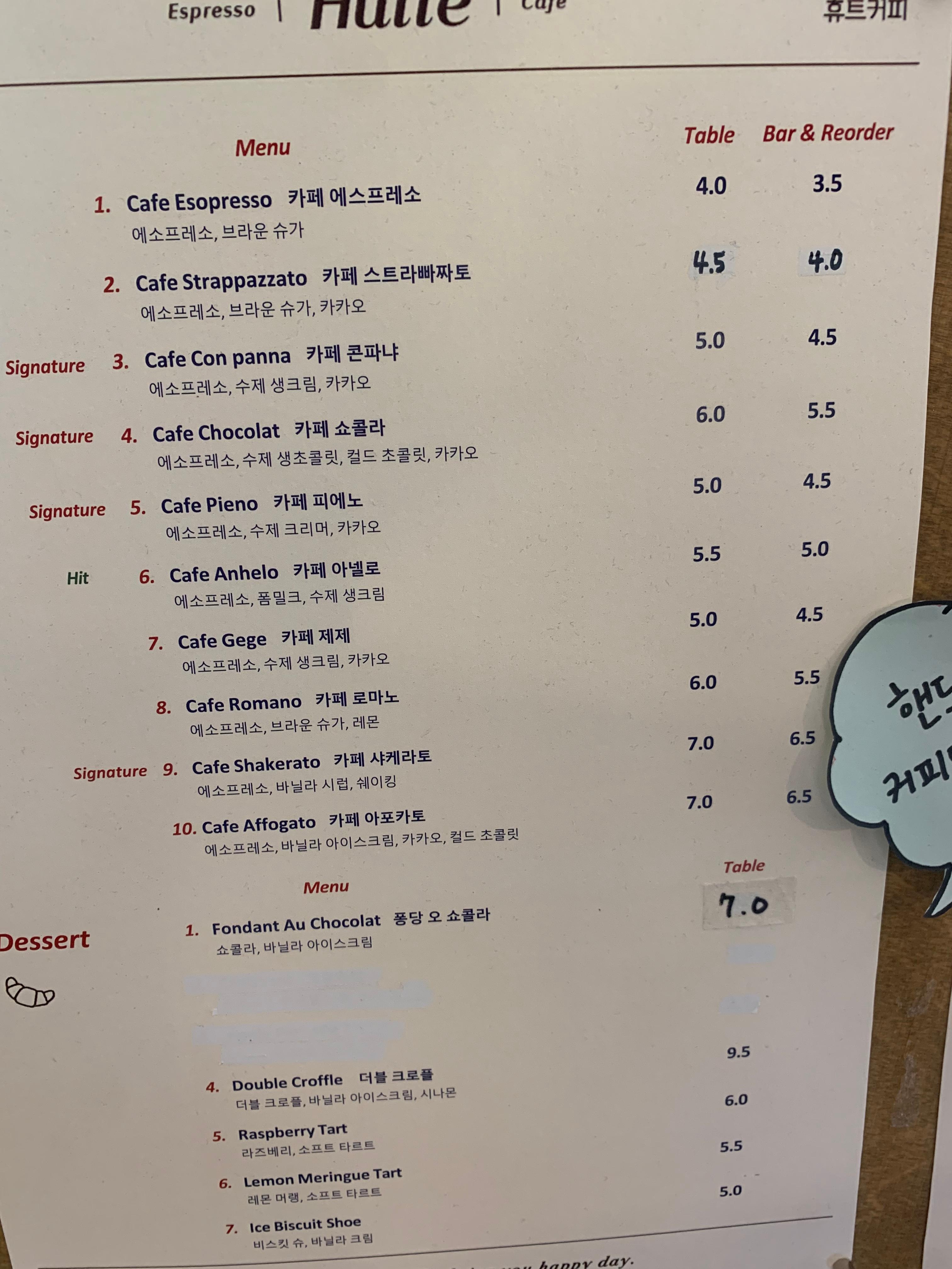바에서 이용하는거랑 테이블에서 앉아서 이용하는거와 500원차이