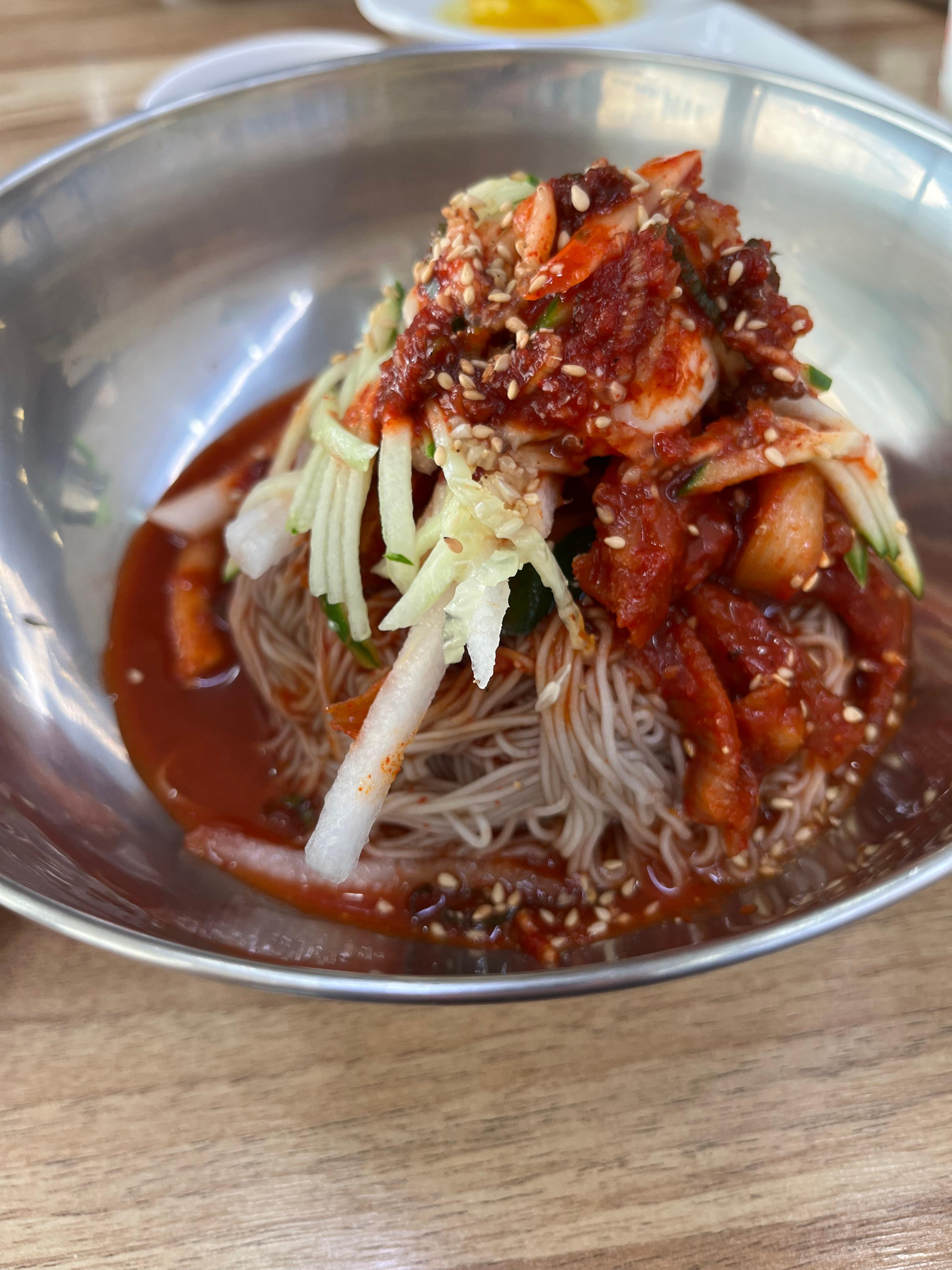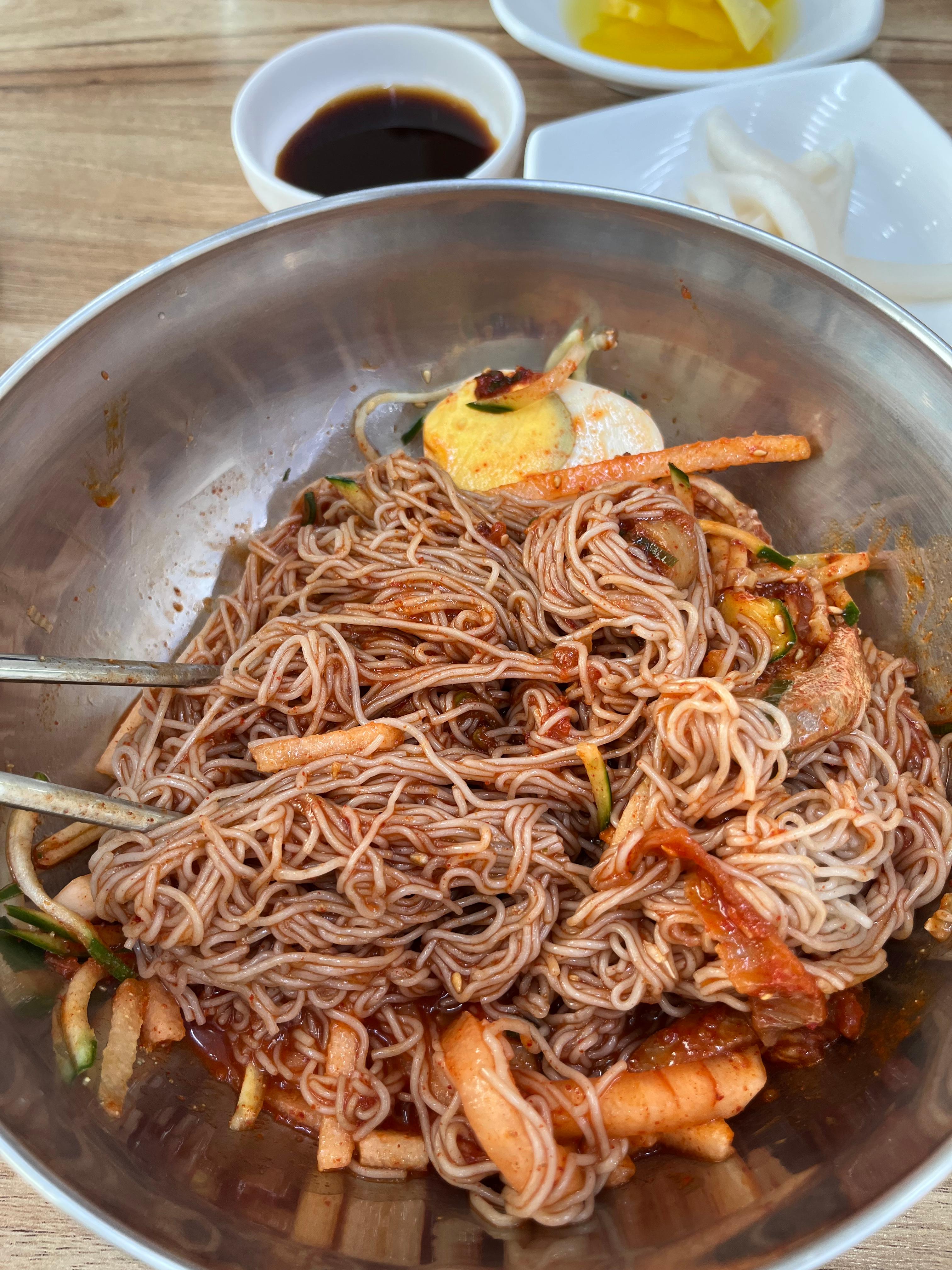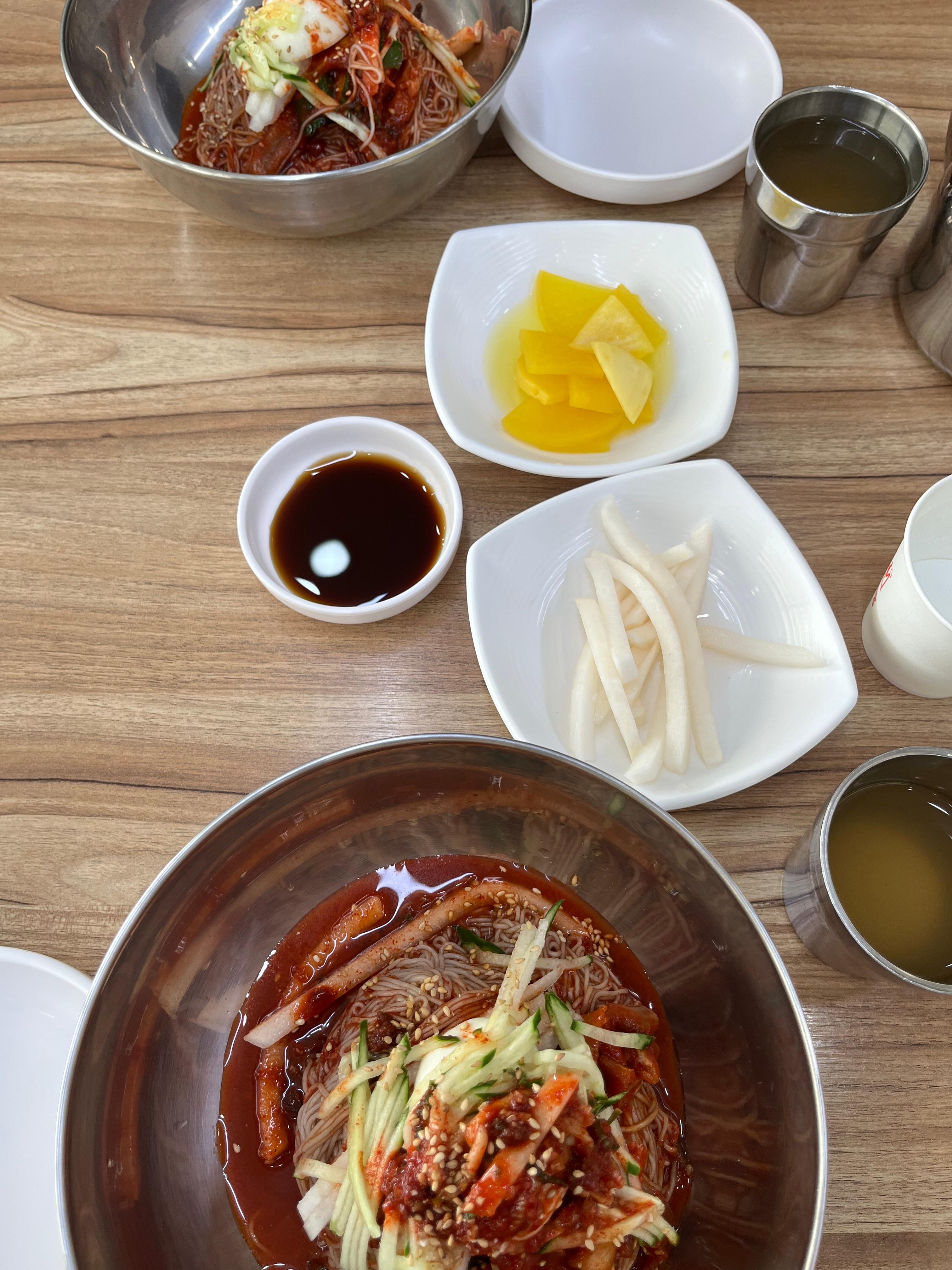 회냉면이 자극적이지 않아요, 식초랑 겨자를 좀 넣고 조제해먹으면 자극적