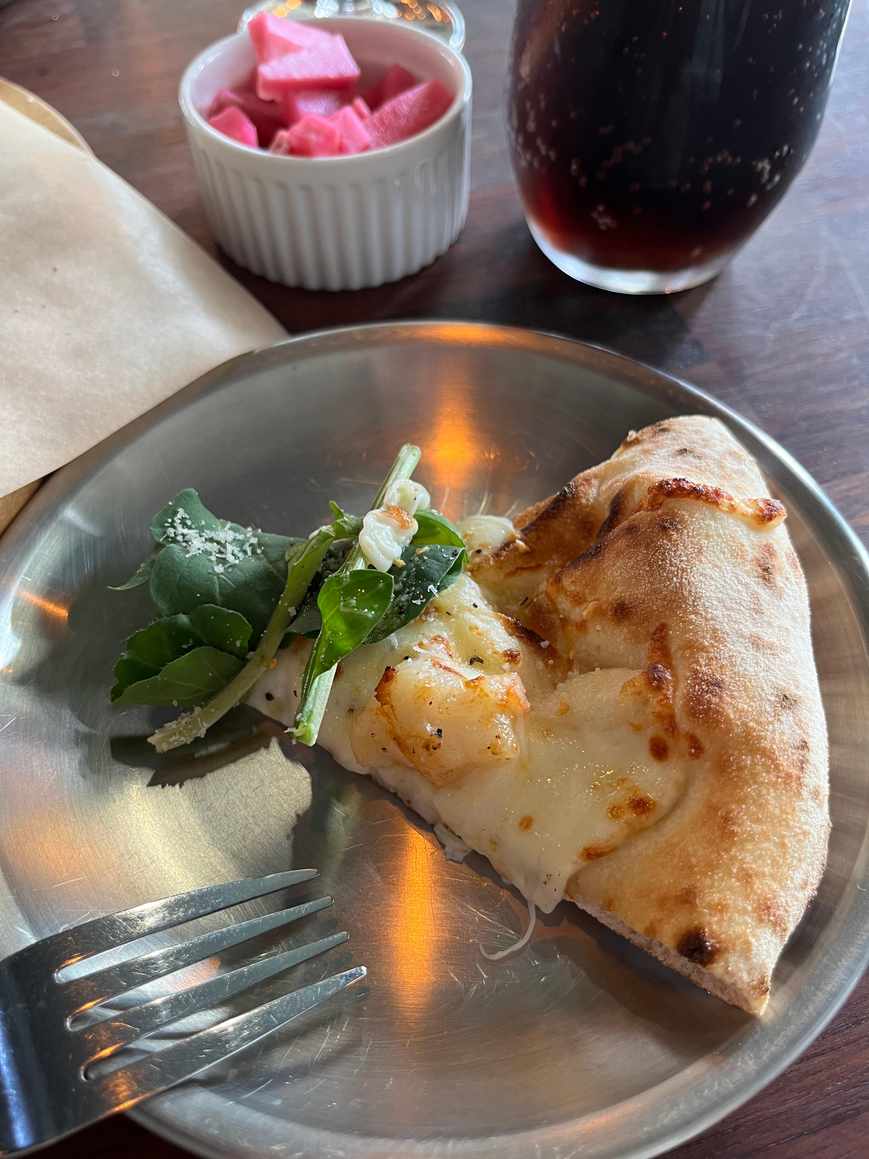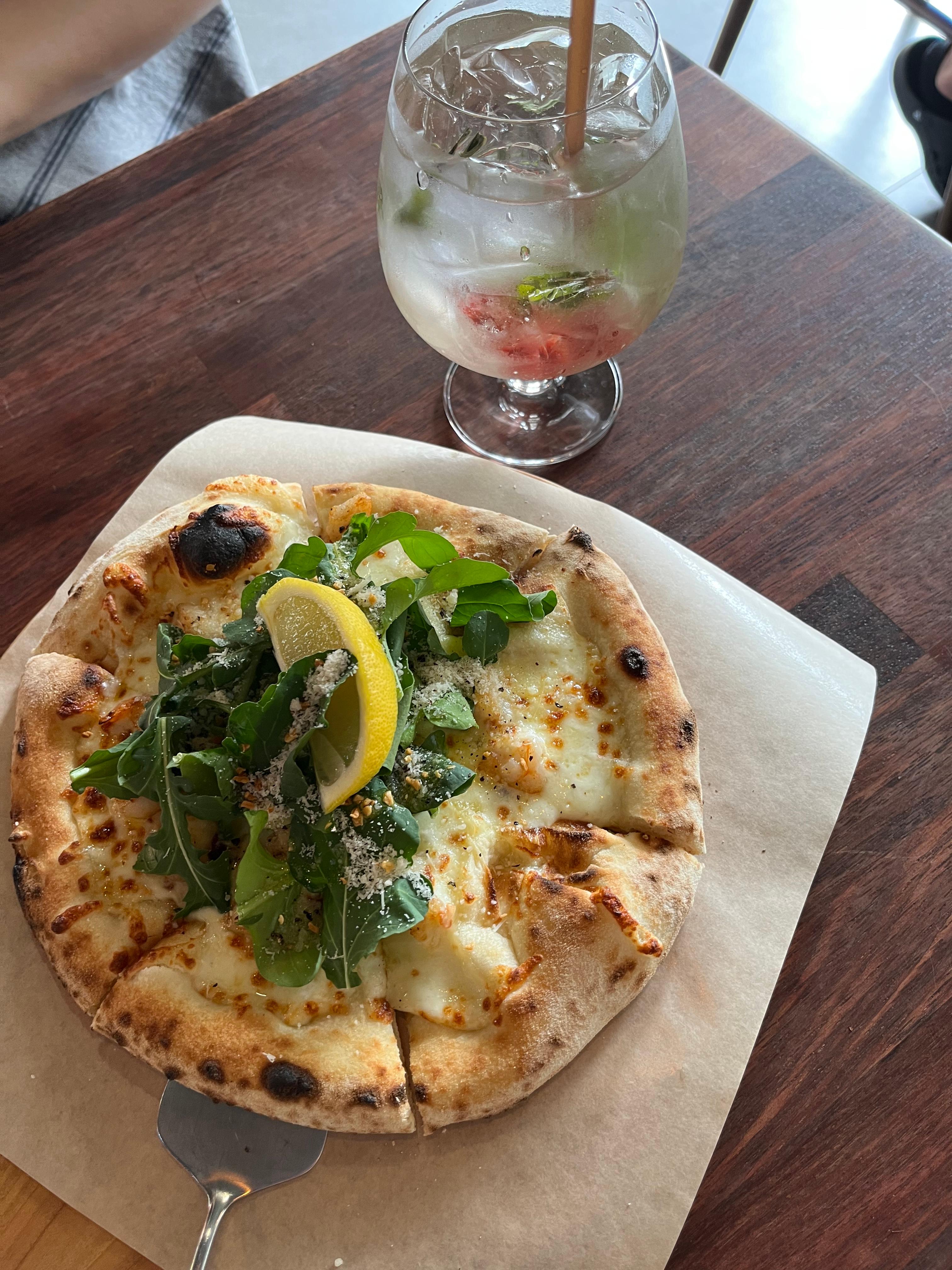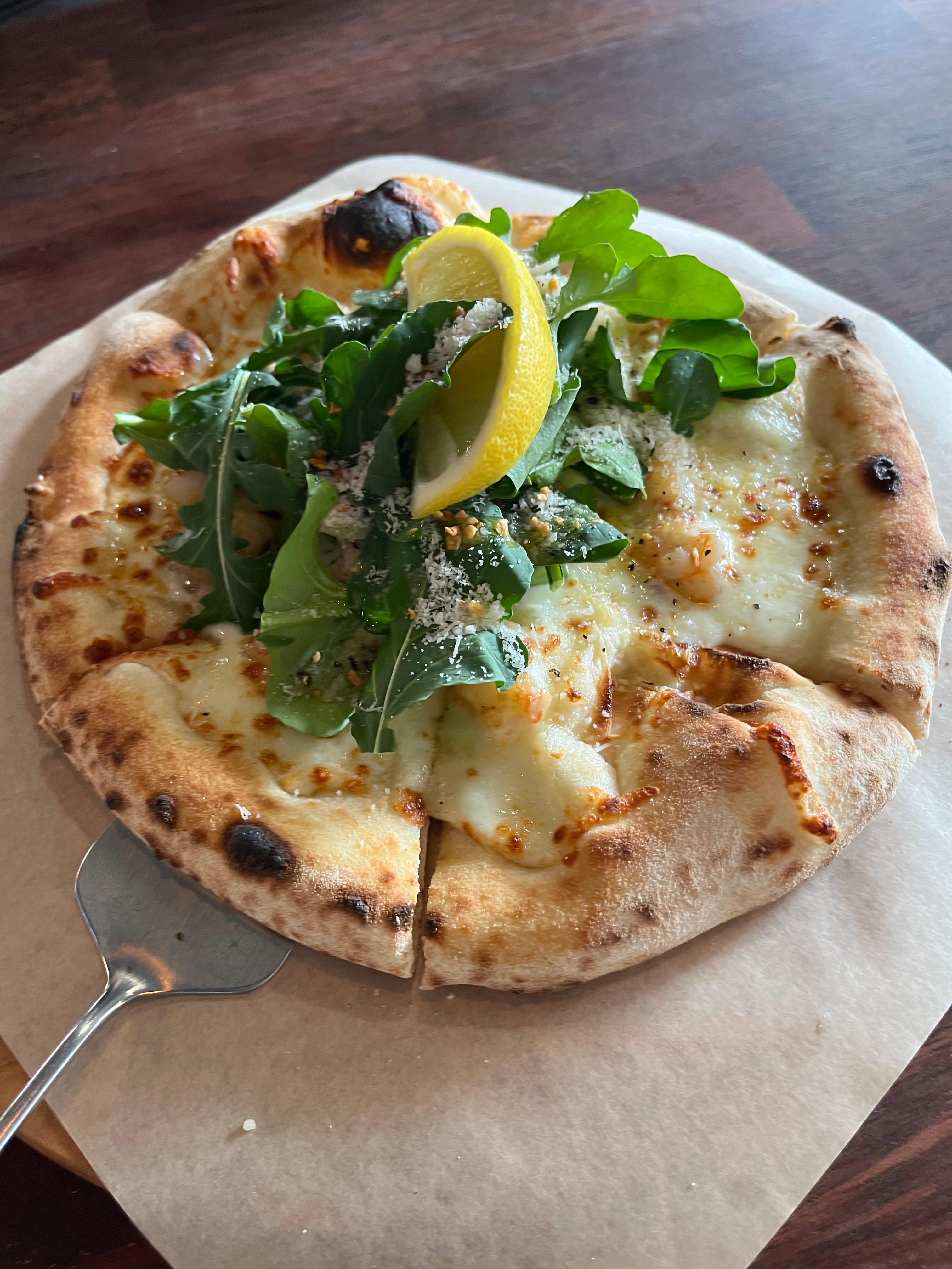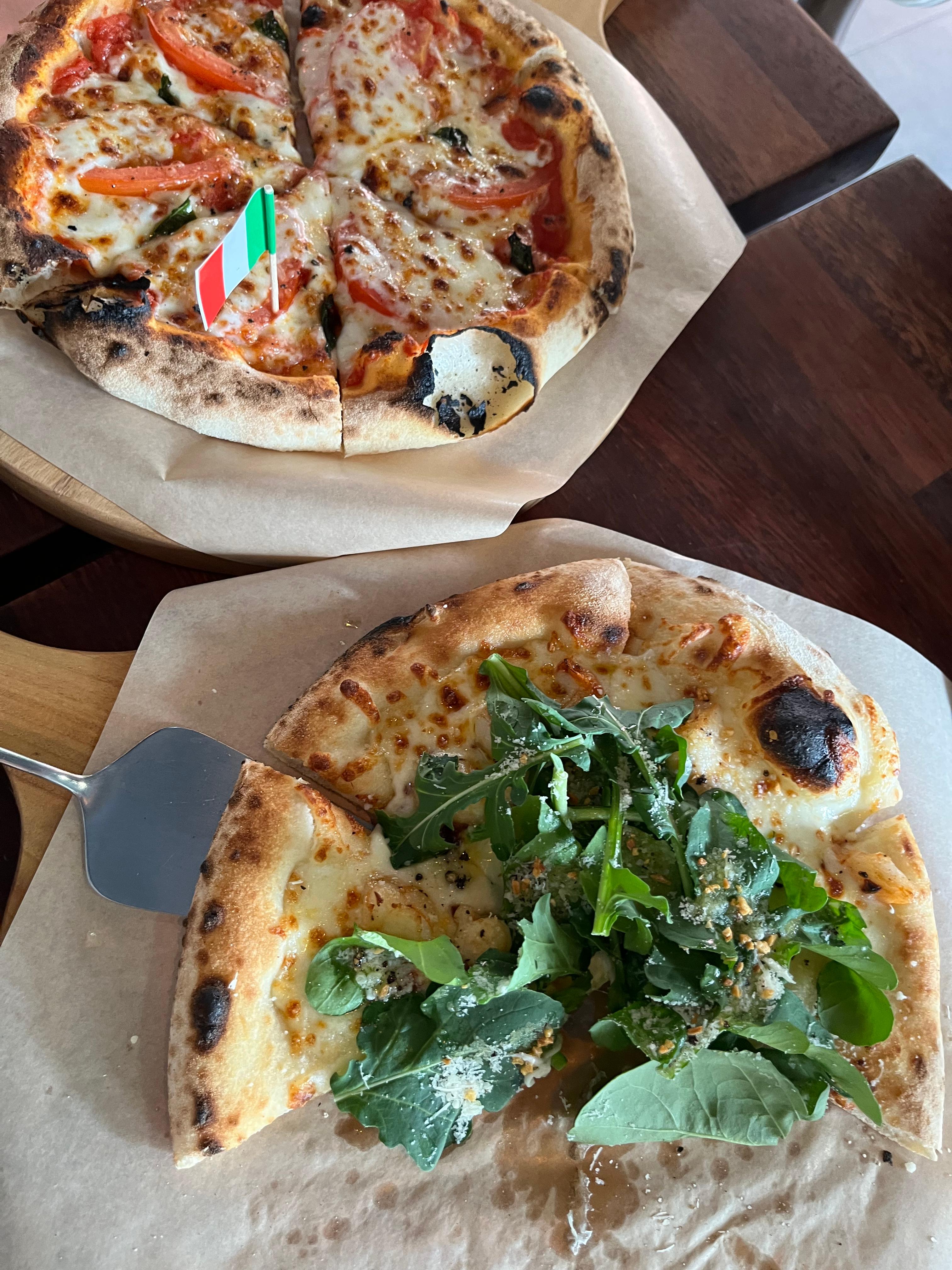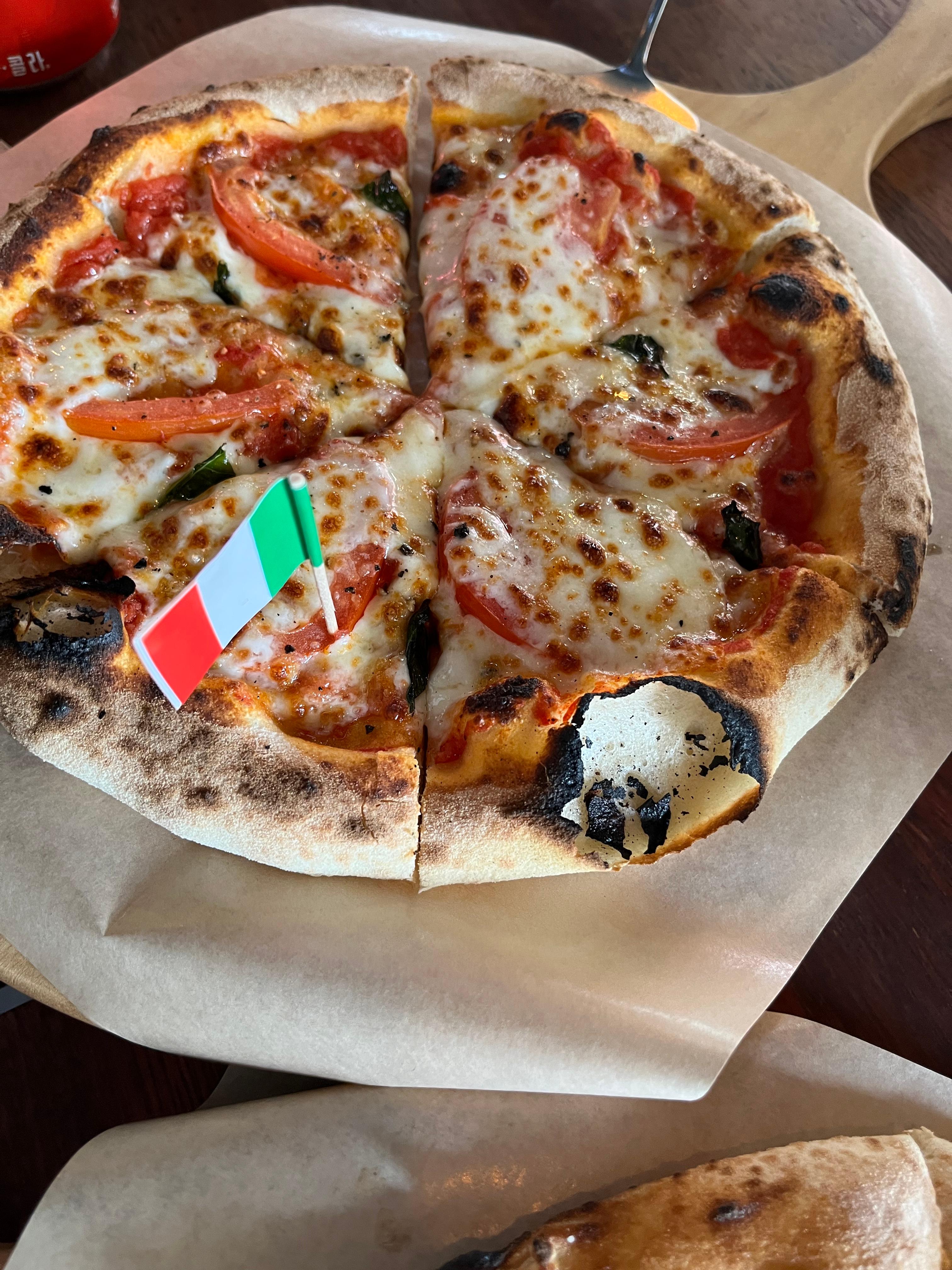 화덕피자 기본 가격이 너무 착함,, 쉬림프 루꼴라와 마르게리따 주문