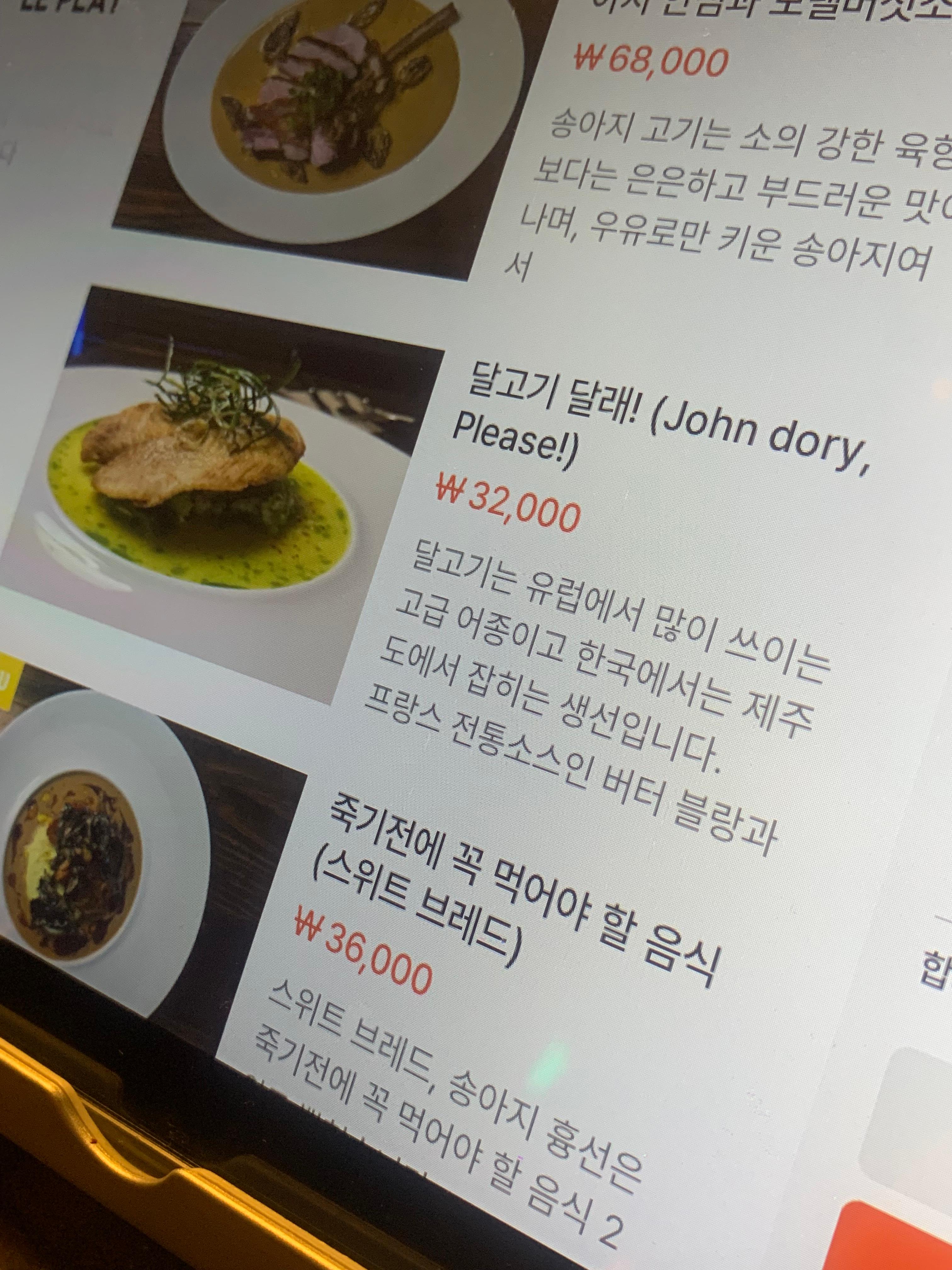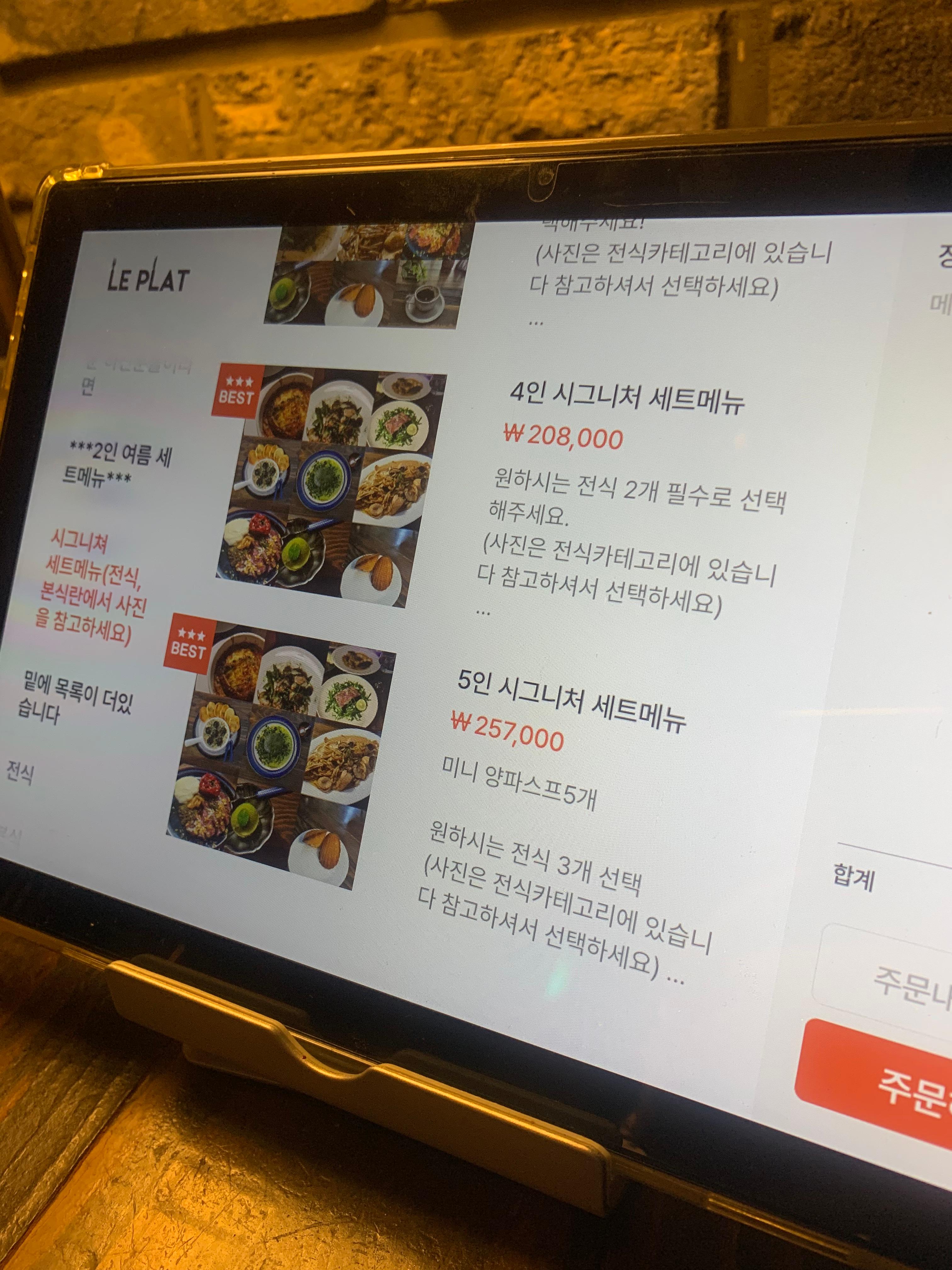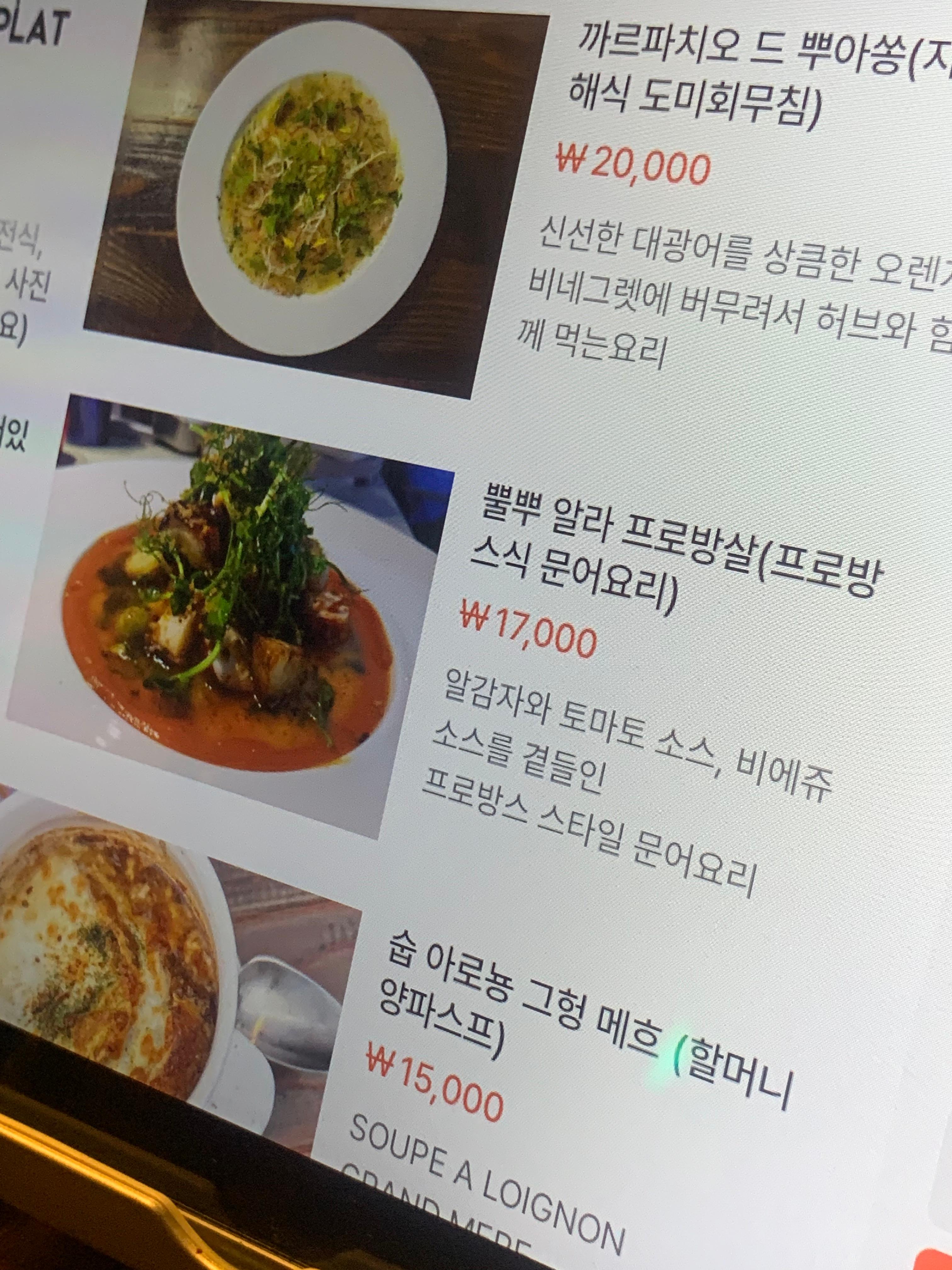 프랑스 퓨전요리집이라 생소한 이름의 음식들이 많음
