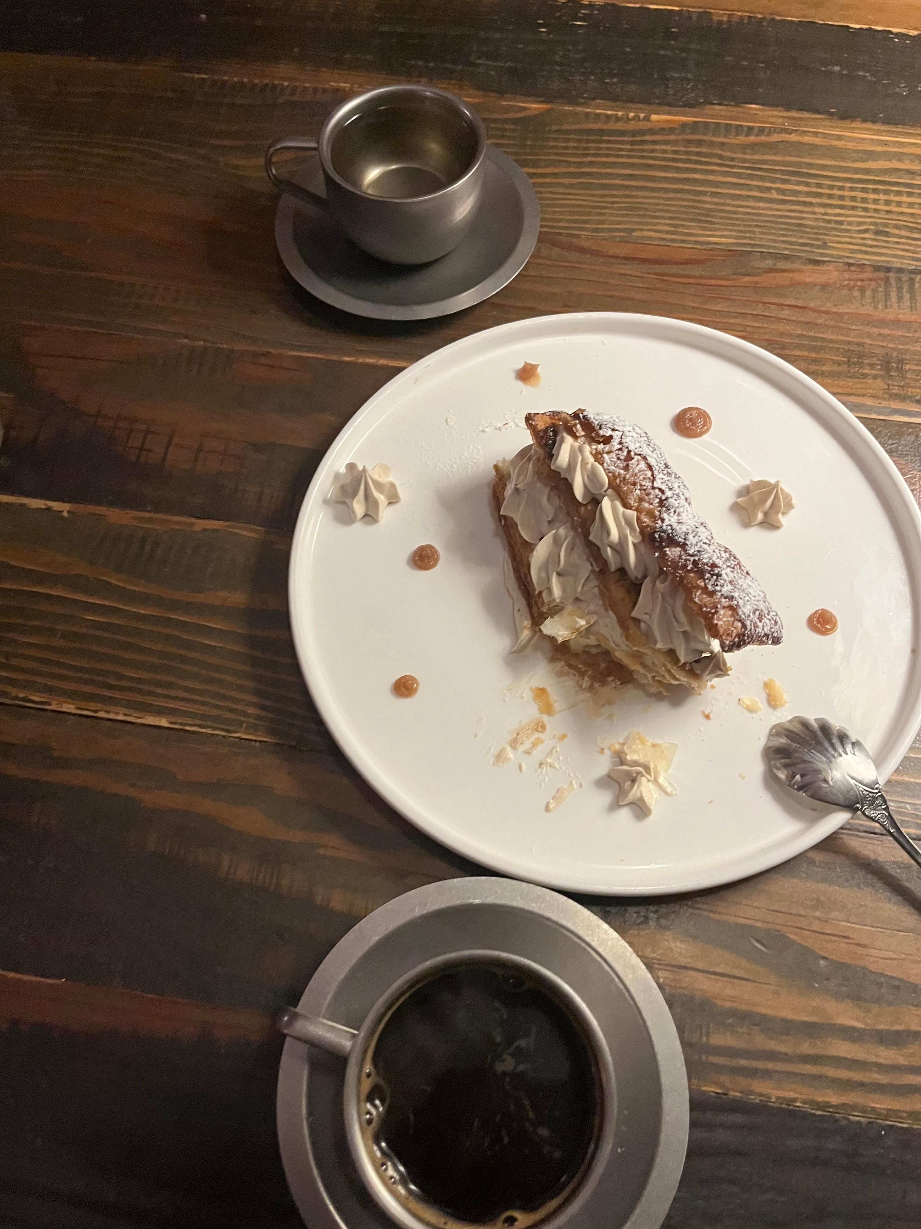 디저트까지 세트메뉴에 포함이에요, 커피와 홍차도