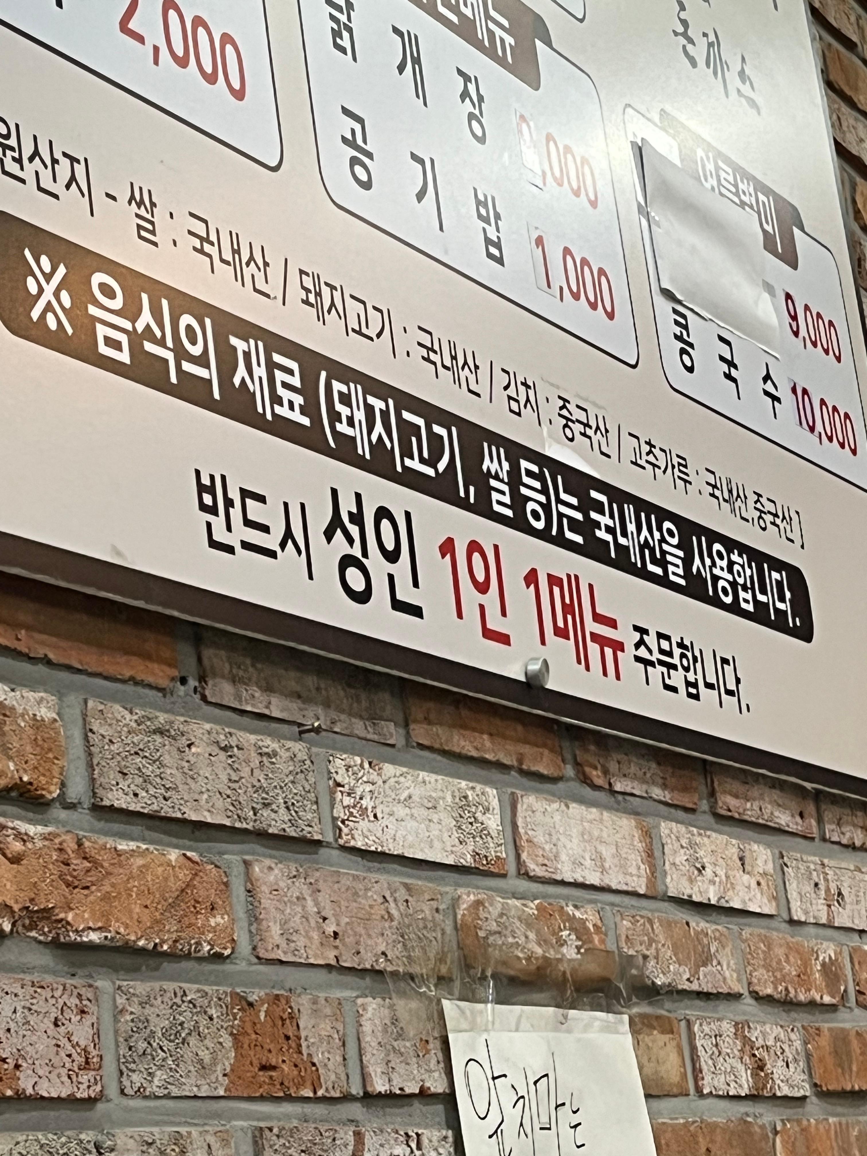 메뉴판 아래에 반드시!! 계속 저거만 읽으면 웃기다