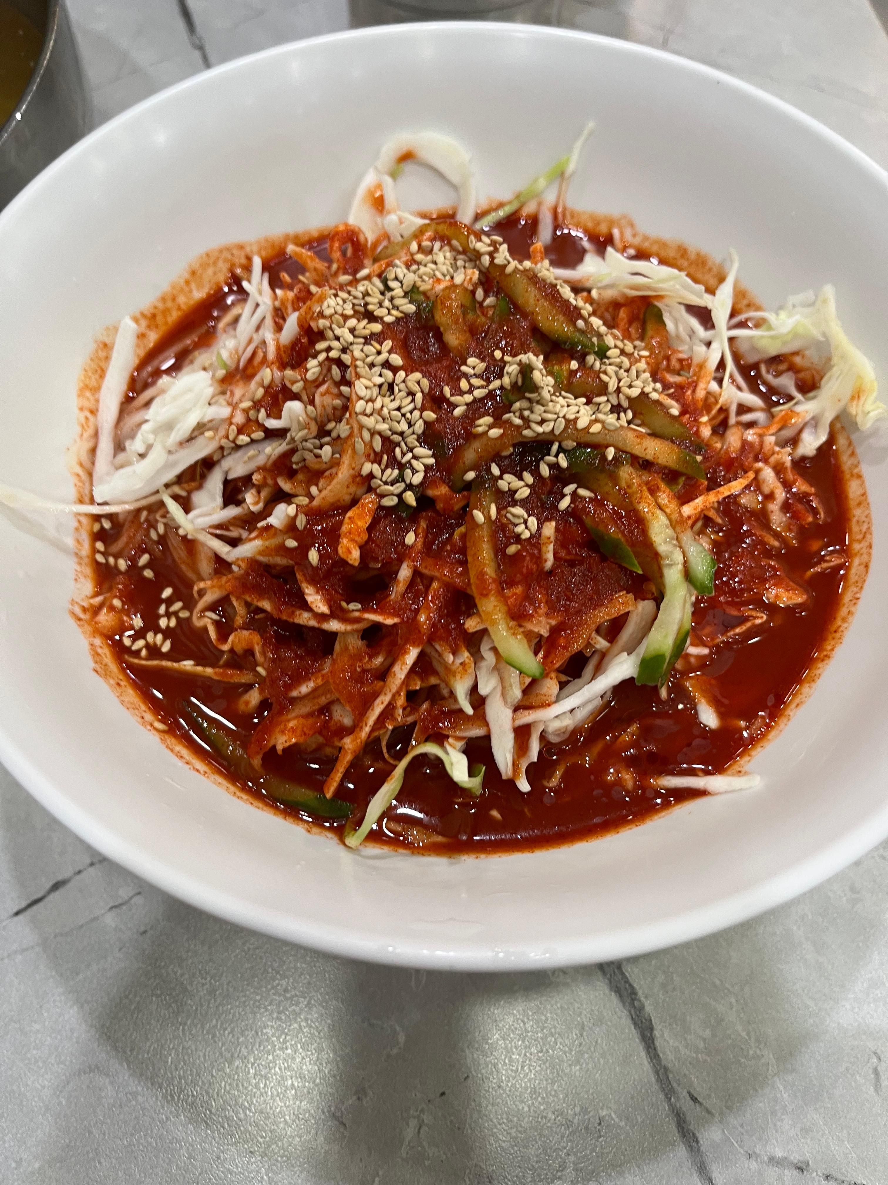 비빔국수는 양배추 때문인가 먹다보면 약간 쓴맛이 나는거 같고