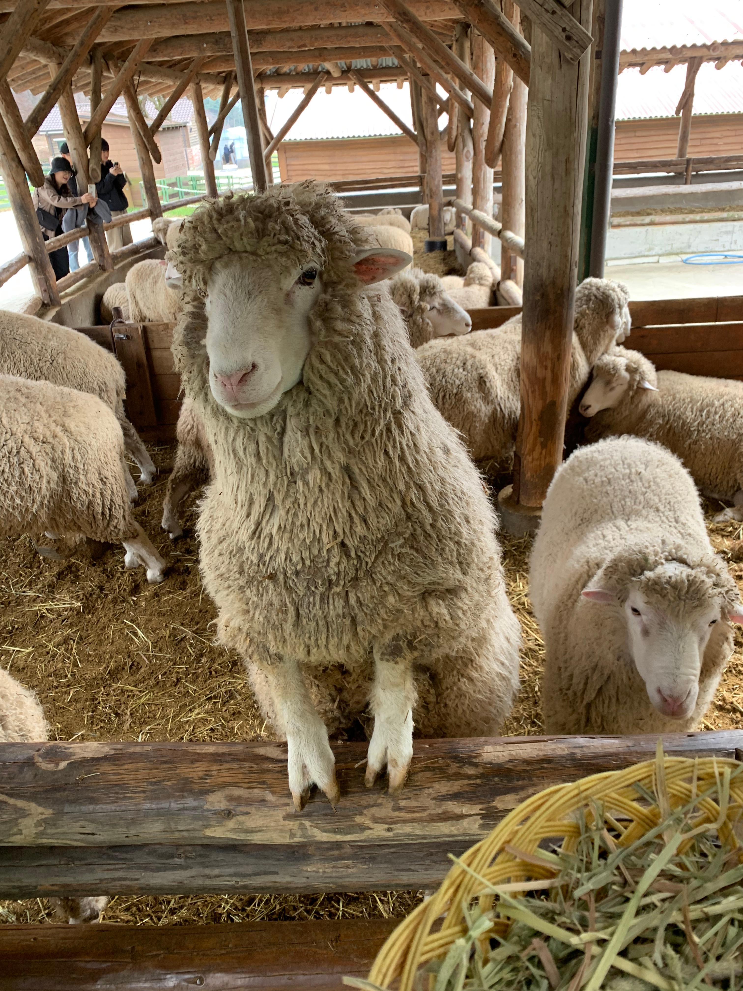 건초 체험장에서 양들의 무서움을 목격