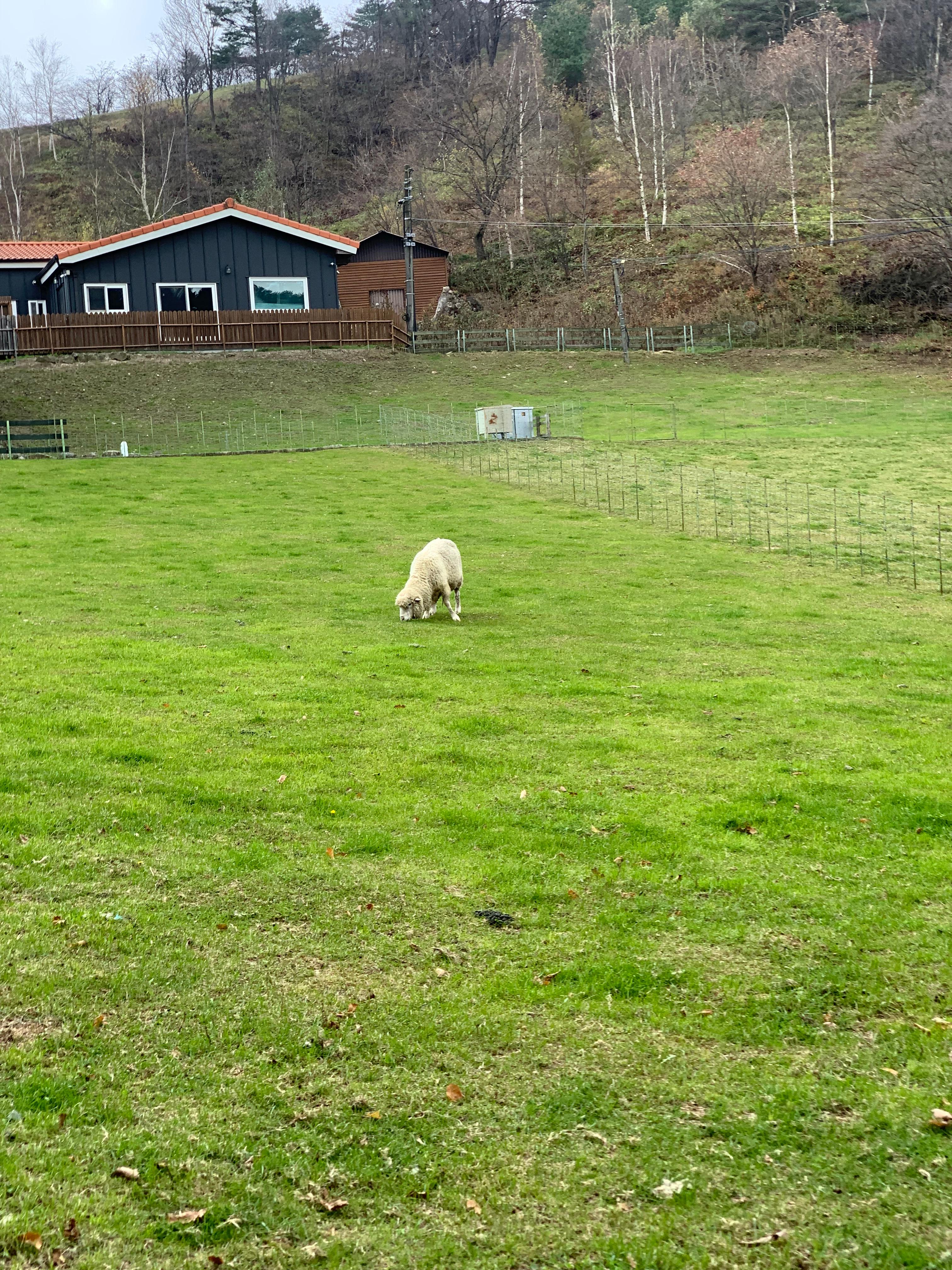 풀 먹는거에 집중하는 양들,,, 근데 자세히 보면 거의 못먹는거나 다름없음, 풀이 너무 짧음
